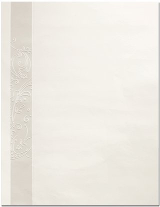 Pearl Lace Foil Ivory Letterhead Stationary Paper. This is a pre-printed, designer paper made from a 24lb bond paper. This stationery Paper is Inkjet and laser compatible. The Stationary is also Acid and lignin free. Paper size is 8 1/2" x 11". This is a specialty paper that is made with pearl foil and is embossed. 25 Sheets